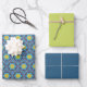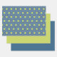 MVB Retro Blue Pattern with Yellow Flower Design Wrapping Paper Sheets