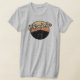 Mvskoke spelling Muscogee T-shirt with Okmulgee Mound representation and sunset gradient.
