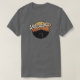 Mvskoke spelling Muscogee T-shirt with Okmulgee Mound representation and sunset gradient.