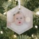 Your baby's photo on a glass ornament Upload your own image to create Christmas tree ornaments for yourself or give as a gift to family, friends, parents and grandparents! The word love in a check script is featured over your photo on the front or delete it.
