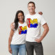 The shirt is good quality and fits just fine, but the colors of the printing are not as bright as in the sample photo. Not the best. The colors are a lot brighter in the sample photo; when I received the shirt they appeared faded. The red looks a little more pink and the blue is a lot lighter. N.B. I did not wash the shirt yet.