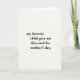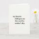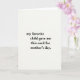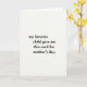 This card features a roomy, creamy off-white background that feels like textured paper, with a centered stack of black serif lettering that keeps the focus on a teasing, affectionate message. The words read, “my favorite child gave me this card for mother’s day,” setting up a gentle wink of family humor that still lands like a little hug ❤️. The text sits in the middle of the front with generous empty space all around, like a quiet pause that makes the joke feel more tender than sharp. The type is dark and crisp, with evenly spaced lines that look carefully aligned rather than crowded. With no characters or scenery, the warmth comes through in the way the message sounds like it’s spoken with a soft smile, as if someone is nudging a loved one while passing the card across the table. The overall look stays simple and calm, letting the playful favoritism read as friendly banter instead of bragging 🌼. The only visual elements are the black serif text centered on a smooth, off-white field.