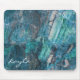Heavenly shades of blue, turquoise and gray blend in a beautiful symphony of color in this abstract marble design. A modern script font monogram has been added to the left corner to personalize. You can edit this name with any name or text, or delete the name entirely if you prefer the mouse pad without it.
