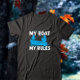 Comfortable, casual and loose fitting, our heavyweight dark color My Boat My Rules T-Shirt will quickly become one of your favorites. Made from 100% cotton, it's unisex and wears well on anyone and everyone. We’ve double-needle stitched the bottom and sleeve hems for extra durability.