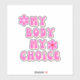 Show your support for women's fundamental rights with this car decal design that features "my body my choice" text in pink retro 1970s style font