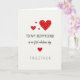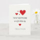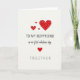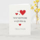 Soft colors and an off-white background set a calm, loving mood for this card ❤️. The main focus is a stack of words in the center, with “TO MY BOYFRIEND” and “TOGETHER” written in dark, all-capital sans-serif letters. Between those lines, the phrase “on our first valentine’s day” appears in a flowing cursive style, giving it a softer, more intimate feel 💘. Above the text, a small group of red hearts sits near the top, drawing your eye upward. One larger heart is deep red with small white polka dots, and the nearby smaller hearts include one with a glittery look and another in plain red. At the bottom of the layout, a single solid red heart sits under the words, tying the whole message together. The overall look is simple and sweet, made for a couple celebrating an early milestone 😘.