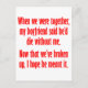 Wishing revenge on an ex-boyfriend was never funnier! Reads "When we were together, my boyfriend said he'd die without me. Now that we've broken up, I hope he meant that!"