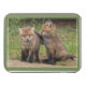 Two red fox kits share a moment just outside their den.
