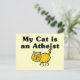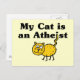 A silly cartoon illustrated kitty cat poses under text reading My Cat is an Atheist. This is a cute design for cat lovers that want to make a religious statement - or a non-statement.