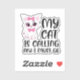 Answer the call of feline love with this 'My Cat Is Calling and I Must Go' sticker! Featuring an elegant white cat adorned with a soft pink ribbon, this charming artwork is perfect for cat enthusiasts who know the undeniable pull of their beloved pets. A delightful gift for cat lovers, this design adds a touch of sophistication and humor to your day.