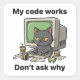 The perfect motif for all developers, programmers and computer scientists. Shows a grumpy-looking cat sitting in front of the screen and presenting a witty saying. An ideal statement for humorous and relaxed programmers.