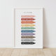 Introduce your kiddo to their colors with this simple and beautiful poster. Decorate a wall in your little one's nursery, bedroom, or playroom with this educational print to encourage learning everyday. Change the language or spelling within the design using the template features.