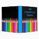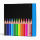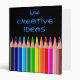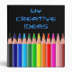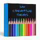 Bright colored pencils are lined up across the bottom of the front and back of this binder. Blue spine, black background, and in blue "My Creative Ideas" across the top. Perfect to keep track of sketches, poems, writings, anything you can think of.
