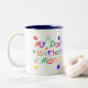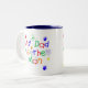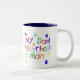 This adorable coffee mug will be treasured by the kids' Dad for Father's Day or birthday or any other celebration. It says "My Dad is the man" and has childish like drawings and hand prints all over. It's bold and colorful in red, blue, green and orange. You can leave the inside of the cup navy blue or change it to any one of the other coordinating colors.