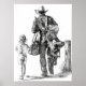 Pencil drawing touched up with airbrush of a rodeo cowboy on his way home after the show, accompanied by his daughter. A realistic painting for boys who´s mamas failed to tell them not to want to be cowboys (sorry, Willy :-) ) and all other western art fans.