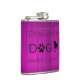 A perfect flask for those who prefer the company of dogs and the comforts of home! This flask design features text that says "I'd go...but my dog wouldn't allow it." with a paw print and dog silhouette embellishment against a purple wooden background. Additional gift items available with this design as well.