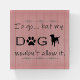 A perfect paperweight for those who prefer the company of dogs and staying at home! This paperweight design features text that says "I'd go...but my dog wouldn't allow it." with a paw print and dog silhouette embellishment against a pink wooden background. Additional gift items available with this design as well.