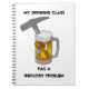 This 80-page notebook features a cartoon drawing of a glass of beer with a rock hammer and hand lens, representing a geologist's two great loves! The text reads "My Drinking Class has a Geology Problem."