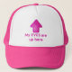 It's the very funny, sometimes, very useful, "My EYES are up here" pink trucker hat! Featuring a hot pink arrow centered on the front of the hat, pointing upwards, with the phrase below. Choose from different hat colors, or take it in neon pink, and grab yours today!