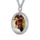 I chose gold plated so that the metal would not react with my skin oils and perspiration. But, I changed the necklace from the gold plated one to a sterling silver. My skin cells will tarnish the silver. But it will not look as bad if some portion of the gold plated necklace somehow became compromised. Zazzle did a find job turning the picture into a pendant for me. As you can see, the colors and the printing of the final product, match the preview. The picture I took is not very clear. But I am pleased with the product I received.
