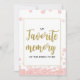 This modern floral "My favorite memory of the bride" bridal shower sign features a pink floral background with golden glitter splashes. The text is written in a mix of a playful calligraphy font and a modern sans font. Matching personalized favorite memory of the bride cards are available.
