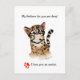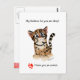 This cute cartoon watercolor ocelot cat sits on this postcard with a funny love look. Text puns read top: "My feelines for you are deep ..." Bottom of postcard text: "... I love you an Ocelot!" and a heart paw print in red. On the back is a tiny ocelot and heart. Text on back reads: "...Not just an oce-little, but an ocelot!" Colors are brown tan black pink and red, with blue eyes. You can edit and change all aspects of this design. Hit the customize button to change the text font style or size. You can also choose a different background color.