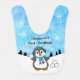 My First Christmas, Cute Penguin throwing snowballs and Snowflakes baby bib.
