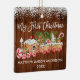 Modern Brush Script My First Christmas Baby Ornament includes Watercolor Gingerbread Train with candy, cookies and pines. Rustic Country Wood Print with Snow.