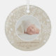 Round glass Christmas tree ornament features your favorite photo surrounded with white leaves, berries and dots on an ivory background. TIP: Upload a high resolution photo that features your baby in the middle - you can crop to a square, too. Ornaments make memorable gifts for family and friends or create for yourself. MORE colors and DESIGNS in our store.