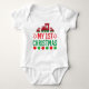 My First Christmas Typography Cute Train Baby Girl Baby Boy Baby Bodysuit features the text "My 1st Christmas" in modern script typography accented with a trains and Christmas trees. Perfect Christmas gift for a baby girl or baby boy. Created by Evco Studio www.zazzle.com/store/evcostudio