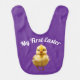 Cute picture of a chick on a purple background, is featured on this baby bib for Easter. With message, "My First Easter", makes this the perfect bib for baby's first Easter dinner! A great little gift too!