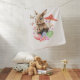 This baby blanket features a watercolor illustration of an adorable bunny surrounded by flowers, a mushroom and butterflies. The text on the blanket is customizable with your own or can be left as is.