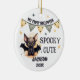 This charming watercolor Halloween ornament is the perfect keepsake for your child's first Halloween. The ornament features a cute watercolor baby bat and a pennant in yellow gray. It has the text "My First Halloween" and "Spooky Cute" written on it. The ornament can be personalized with your child's name and the year, making it a truly unique keepsake.