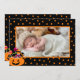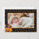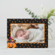 Grandparents as well as other family members and friends will love seeing your baby's latest picture. A Halloween photo card is a great way to stay in touch and share your news. This Halloween photo card shows a picture of your baby on the front with a narrow orange frame around the picture. Don't worry, I set up the template so your photo will fit into it perfectly and easily. The black frame has cute tiny orange hearts in it. A small pumpkin filled with candy decorates the bottom left. Your baby's name, My First Halloween and the year is on the back. This card is perfect for framing. Don't be surprised if you see it on a coffee table or mantle. Message me (I'm Nellie) if you need help finding any coordinating items.