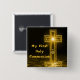 Brown and golden colors "My First Holy Communion" button pins original art unique design with a special cross with star burst all reflected in the peaceful water ripples below. Remember this special holy day with buttons for your family and friends. See pink version, blue version and other First Communion stickers, magnets, postage stamps, shirts at MVDesigns store.