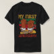 This powerful and symbolic design features two clenched fists breaking free from shackles and chains, set against a background with distressed stripes in the colors of the Pan-African flag (red, black, and green), along with yellow accents. The text "MY FIRST" appears at the top and "JUNETEENTH" at the bottom in a bold, vintage-style font. This design commemorates the historical significance of Juneteenth, celebrating freedom and the end of slavery in the United States. It is a meaningful way to honor this important day and the journey towards liberation.