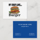 My First Love Burger Chef Restaurant Business Card designed by Nisha Prabhu. Featuring yummy delicious Burger graphic digital illustration with funny typography ''My First Love...Burger.'' Fully Customizable. Personalize with your details. Serve up a sizzling first impression with these First Love Burger Chef Restaurant Business Cards! Perfect for chefs, restaurateurs, and food industry professionals, these cards are a flavorful way to showcase your culinary expertise. Featuring a mouthwatering burger design that captures the essence of your love for food, these business cards are sure to leave a lasting impression on potential clients and customers. Whether you're promoting your restaurant, catering services, or personal brand, these cards are a tasty and eye-catching choice. Stand out from the crowd and let your passion for burgers shine with these deliciously unique business cards!