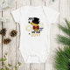 My First New Year Cute Baby Boy Gold Glitter Baby Bodysuit One-Pieces features the text "My 1st New Year (add year)" in modern script with gold glitter accented with stars, fireworks, a top hat and red plaid bow tie. Evco Holidays www.zazzle.com/store/evcoholidays