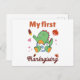 Cute and funny design featuring a dinosaur baby and the quote "My first Thanksgiving". Great idea for babies celebrating their first Thanksgiving.