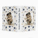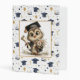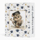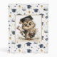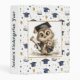 The front of the binder features a cheerful, celebratory kindergarten theme centered around an adorable owl character dressed in a tiny graduation cap. The owl stands proudly at the center, holding a rolled diploma in one wing and a colorful bouquet of flowers in the other, symbolizing both achievement and the sweetness of early school milestones. Surrounding the owl is a lively pattern of floating graduation caps, shining stars, and festive balloons in soft shades of blue, gold, and white. The overall design feels joyful and encouraging, perfectly capturing the excitement of a child completing their first year of school. With its bright colors and playful artwork, the front cover creates a keepsake-worthy look that parents and children will treasure for years.