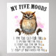Whooo’s got all the moods? This playful design showcases an adorable owl cycling through 'My Five Moods'—from wise and serious to totally over it. Perfect for anyone who relates to the rollercoaster of daily emotions, with a touch of feathery fun. Whether you’re a night owl, a bird enthusiast, or just love expressing your vibe, this design is a hoot for every occasion. Great for shirts, mugs, or any item you want to add personality to!"