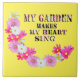 Pictured is a pretty daisy garland with the words my garden makes my heart sing with imbedded flowers.