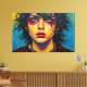 Otis Porritt's digital artwork presents an arresting close-up portrait, bursting with an electrifying palette of hot pink, vivid yellow, and intense blue. The subject's face is rendered with bold, contrasting color blocks and a dynamic, pointillist-like texture, creating a modern pop art aesthetic. Piercing blue eyes hold the viewer's gaze, while a stark black streak descends from one eye, adding a poignant touch. The vibrant, almost chaotic energy of the multi-colored hair and dotted background amplifies the work's striking visual impact.
