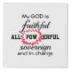This MY GOD IS FAITHFUL Christian Faux Canvas Print is a comic-inspired design with a clear statement of faith. Motivational Christian faux canvas print is designed with the inspirational quote, MY GOD IS FAITHFUL, ALL-POWERFUL, SOVEREIGN AND IN CHARGE. Written in bold and script typography and illustrated with a red Pow graphic incorporated in the word POWERFUL. Ideal statement wall art for any home, church or office. You can change the background color by clicking Customize Further and selecting from the color palette. Choose from a wide selection of Christian Scripture canvas prints and wall art, designed by Berean Designs.