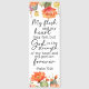 This beautiful bookmark graphic features a watercolor cactus floral design with orange and green flowers at the top and bottom. The center contains the biblical quote 'My flesh and my heart may fail, but God is the strength of my heart and my portion forever,' from Psalm 73:26, in an elegant script font.