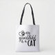 Kitty Love - My grandchild is a cat handwritten typography quote with intertwined heart and paw on the front and a cat silhouette on the back of the tote bag.