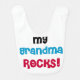 White baby bib with black, blue, and red text design reads My Grandma Rocks!