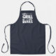 My Grill My Rules, funny BBQ Logo style, navy blue apron. White typography design with grill tool accessories.