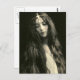 Vintage photograph of a young woman with very very long hair, a serious look on her face as she looks downward and a small metal headband