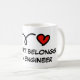 My heart belongs to an engineer cute coffee mug. Funny cup for girlfriend, wife, colleague, coworker, friend, family etc. Cute red heart with whimsical typography template. Add any job or profession to create a mug perfect for you. Office humor Birthday gift ideas. Also great as romantic Valentine's Day gift!